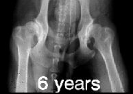 ukončení vývoje kostí pánve je 4-6 měsíců, hlavice stehenní kosti