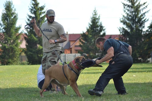 Na pořadu dne byl výlet se psy, jeli jsme po několika letech vlakem na malý výlet do Vyškova. Předtím jsme však pokořili vysoký a náročný železný most, pro některé byl velmi náročný. Musím s uspokojením prohlásit, že naši svěřenci jsou úplně v pohodě, socializovaní, s přehledem zvládají nastupování a vystupování z vlaku, stejně tak spořádaně se chovají i ve vlaku, příjezdy a odjezdy vlaků, a to v naprosté blízkosti, náročné schody, plechovou konstrukci mostu s několika tyčemi místo zábradlí, (bylo to trochu nebezpečné, ale měli jsme tuto akci schválenou pracovníky nádraží). Odměnili jsme se gyrosem u Kauflandu a vraceli se procházkou zpět a osobáčkem, který jsme měli sami pro sebe. Těšili jsme se na frapíčko na cvičák, kde jsme si vychutnávali atmosféru až do pozdních odpoledních hodin. Poté následovaly obrany s neúžasnějším figurantem Marcelem Marečkem.