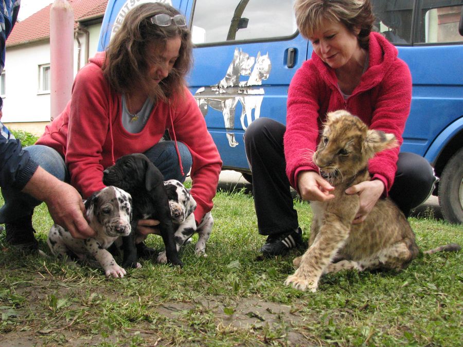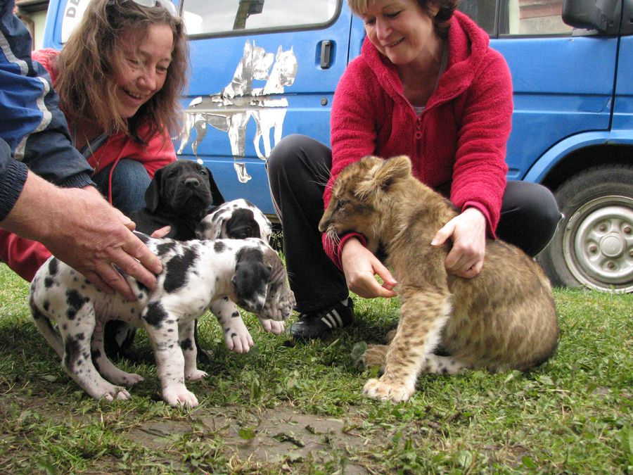 Fotky štěňat s 3-měsíční lvicí